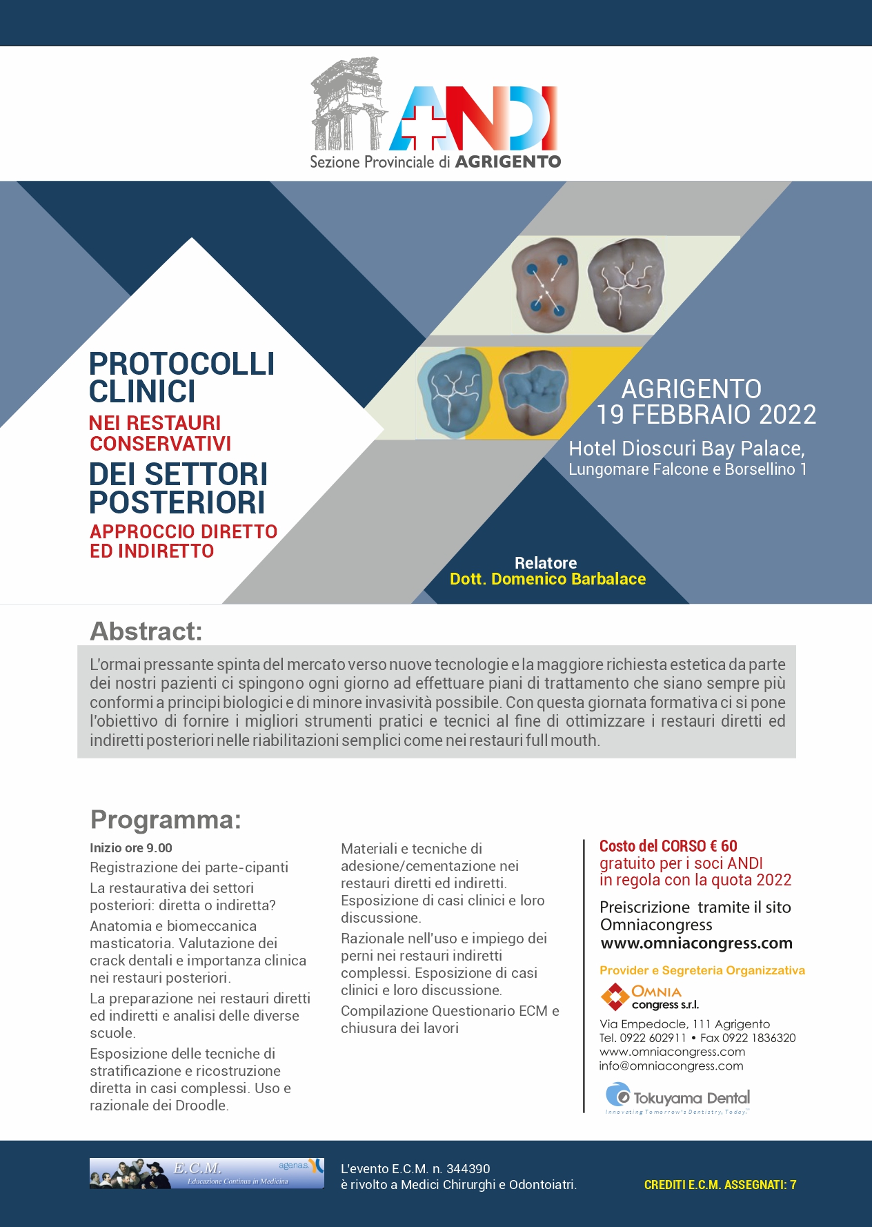 PROTOCOLLI CLINICI nei restauri conservativi DEI SETTORI POSTERIORI approccio diretto ed indiretto