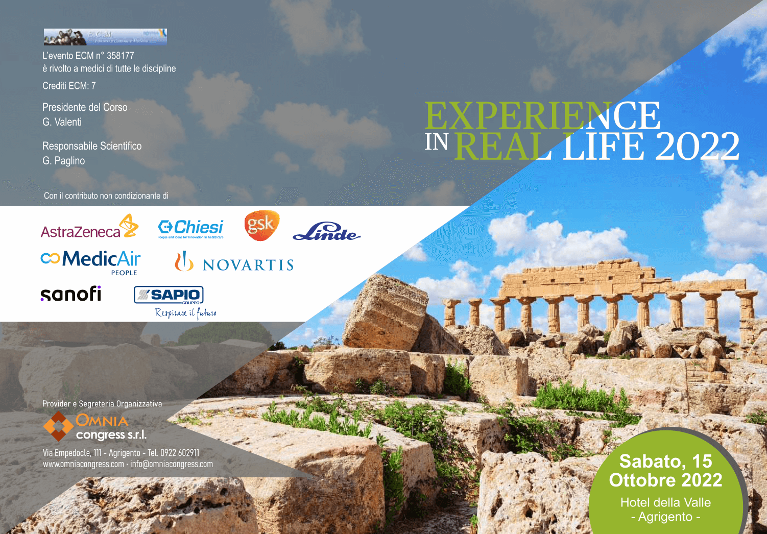 Sala Conferenze - Ospedale San Giovanni di Dio - Agrigento Responsabili Scientifici Onofrio Cacciatore - Giuseppe Mulè - Salvatore Corrao L’evento ECM n° 358473è rivolto a Medici di tutte le discipline Infermieri, Farmacisti e Fisioterapisti Crediti ECM: 11 Iscrizioni Online