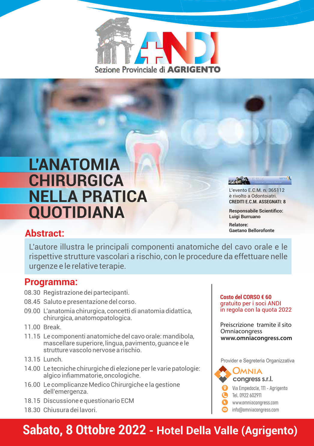 Sala Conferenze - Ordine dei Medici di Agrigento Crediti assegnati: 5 Responsabili Scientifici Francesco Amato - Riccardo Mandracchia - Fabrizio Rabita Iscrizioni Online